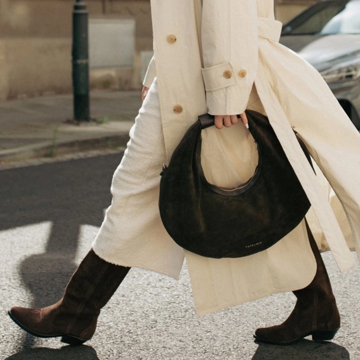 Okrągła forma torebki sprawia, że model wyróżnia się na tle klasycznych listonoszek i worków. Ciepły, klasyczny brąz dodaje jej uniwersalności, a subtelne detale, takie jak srebrny zamek błyskawiczny, nadają całości eleganckiego charakteru. To model, który świetnie sprawdzi się zarówno w casualowych zestawach, jak i bardziej szykownych stylizacjach.