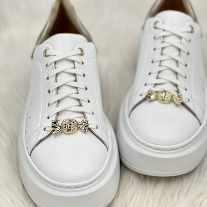 Błyszczące przypinki charms do sznurowadeł! Ozdoby pochodzące od marki TYMOTEO LOVE - nasza autorska unikalna kolekcja biżuterii do butów. Niepowtarzalne wzory będą stylowym i eleganckim dodatkiem do klasycznego obuwia. Kształt przypinki w formie złotego cukierka. Jest to błyszczący i elegancki dodatek. Ozdoby mocowane są za pomocą otworów na sznurówkę buta, który bez problemu utrzymuje się na obuwiu.