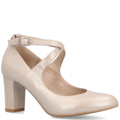 Pełne czółenka damskie na stabilnym niewysokim obcasie wyprodukowane przez polskiego producenta firmę KOTYL. Eleganckie buty damskie stworzone na bazie butów tanecznych. Pantofelki mają wygodny obcas w kształcie słupka, zapinane są na paski krzyżujące się w okolicy kostki. Takie rozwiązanie dobrze podtrzymuje podbicie i całą stopę oraz optycznie wydłużają sylwetkę. Buty rewelacyjnie prezentują się na nodze. Klasyczny wzór w nowoczesnym wydaniu. Stabilne i eleganckie, doskonałe na wyjątkowe okazje - idealnie nadają się na własny ślub. Sprawdzą się doskonałe na również na inne okazje do wieczorowych stylizacji i podczas szaleństw na parkiecie. Pantofle wykonane w całości ze skóry naturalnej w środku i na zewnątrz. Do butów dodajemy zapasowy komplet fleków, tak abyś mogła dłużej bezstresowo cieszyć się z użytkowania zakupionego obuwia.