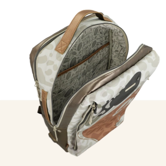 Utrzymany w stonowanej palecie błękitów, beży i pastelowych tonów, plecak wyróżnia się spokojnym, gładkim frontem z delikatnym nadrukiem inspirowanym motywami astronomicznymi. To propozycja dla kobiet, które cenią minimalistyczny design i ponadczasową elegancję. Subtelne logo Anekke oraz miękkie wykończenia podkreślają jego harmonijny charakter.