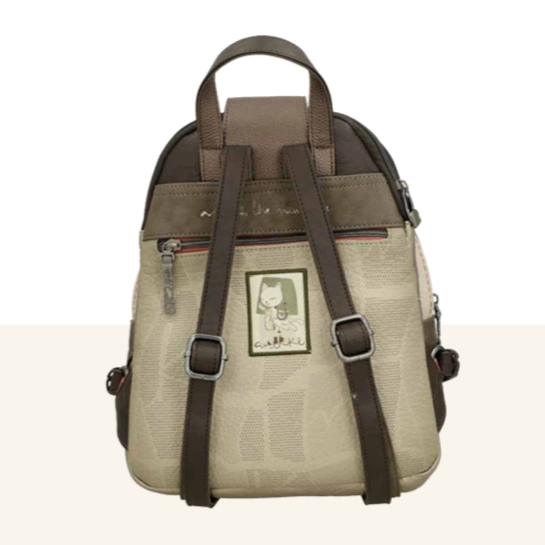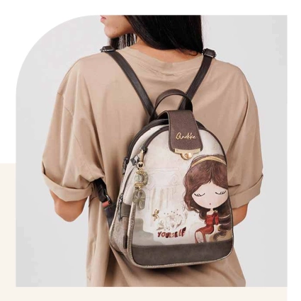 Na froncie plecaka znajduje się grafika Anekke w greckiej scenerii – w otoczeniu kolumn, błękitu morza i złotych refleksów słońca. Delikatne hafty, metaliczne logo oraz zawieszka w formie liścia laurowego dopełniają elegancki charakter modelu. Beżowo-błękitna kolorystyka inspirowana śródziemnomorskim krajobrazem nadaje mu lekkości i ponadczasowego uroku.