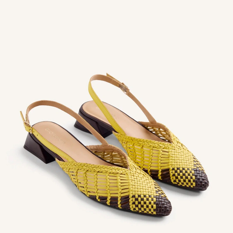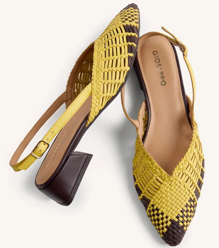 Czółenka GIOSEPPO 79267 w energetycznym, limonkowym odcieniu to wyjątkowe połączenie ręcznego rzemiosła i nowoczesnej formy. Dwukolorowa, pleciona cholewka przyciąga uwagę i nadaje modelowi lekko wakacyjnego charakteru, a smukły nosek w szpic pięknie wysmukla stopę.