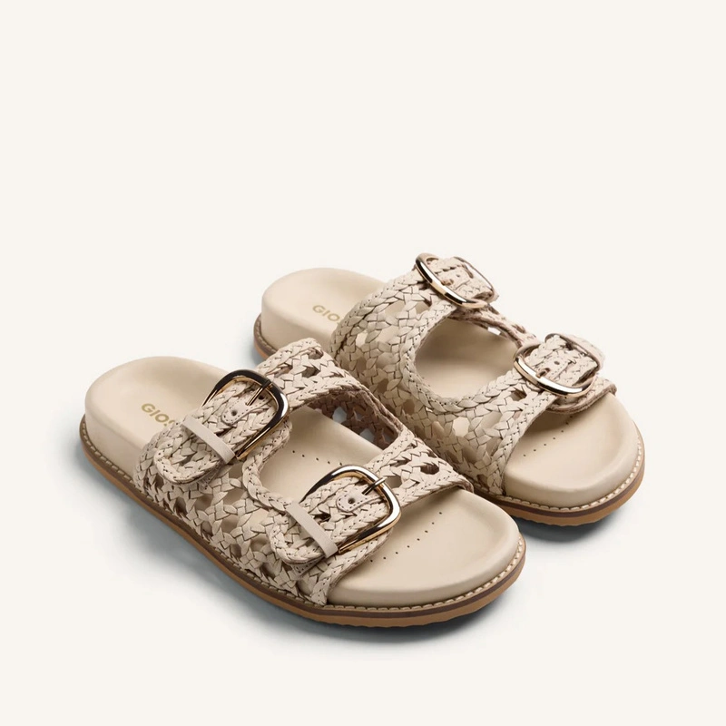 Klapki GIOSEPPO 79032 w eleganckim, kremowym odcieniu to idealna propozycja dla kobiet, które cenią naturalne materiały, wygodę i ponadczasowy design. Ręcznie tkany splot nadaje im unikalnego charakteru, a stonowana kolorystyka sprawia, że doskonale wpisują się w letnie stylizacje.