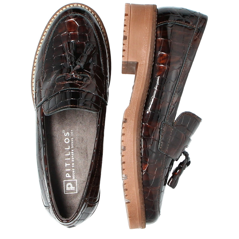 Półbuty ze skóry lakierowanej PITILLOS 10770 brązowe – elegancja i wygoda na co dzień