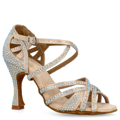 Szukasz wygodnych, a jednocześnie efektownych butów na taneczną imprezę? Może jesteś na etapie poszukiwania idealnych butów ślubnych? Sandałki z najnowszej kolekcji ślubnej TYMOTEO LOVE to profesjonalne taneczne buty! Zgrabne sandałki z miękką elastyczną podeszwą wykończoną od spodu skórą welurową doskonale łączą wygodę i efektowny wygląd. Cholewkę buta opracowano tak, by jak najlepiej trzymała stopę, a paseczki wyłożone opalizującymi cyrkoniami gwarantują błysk na parkiecie. Odkryty przód i zakryta pięta połączone ze skrzyżowanymi paskami to wzór charakterystyczny dla obuwia tanecznego. Buty są wyjątkowo wygodne i doskonale sprawdzą się podczas wielogodzinnej zabawy na parkiecie lub treningach tańca latynoskiego. W sandałkach zastosowano sprawdzony obcas o wysokości 9 cm, szpilka latynoska typu flare dodaje sylwetce lekkości, a przy tym jest bardzo stabilna. Paski trzymające stopę ułożone są krzyżowo, dzięki temu but nie skraca nogi, a wręcz przeciwnie, podkreśla jej zgrabną linię i dodaje butom wdzięku. Wnętrze buta także zostało wykonane z miękkiego materiału, zapewnia więc doskonałą cyrkulację powietrza.