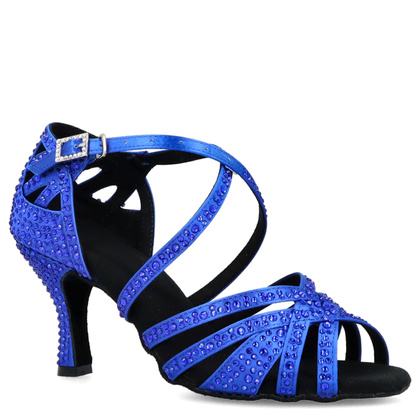 Szukasz wygodnych, a jednocześnie efektownych butów na taneczną imprezę? Sandałki z najnowszej kolekcji tanecznej TYMOTEO LOVE to profesjonalne taneczne buty! Zgrabne sandałki z miękką elastyczną podeszwą wykończoną od spodu skórą welurową doskonale łączą wygodę i efektowny wygląd. Cholewkę buta opracowano tak, by jak najlepiej trzymała stopę, a paseczki wyłożone opalizującymi cyrkoniami gwarantują błysk na parkiecie. Odkryty przód i zakryta pięta połączone ze skrzyżowanymi paskami to wzór charakterystyczny dla obuwia tanecznego.  Buty są wyjątkowo wygodne i doskonale sprawdzą się podczas wielogodzinnej zabawy na parkiecie lub treningach tańca latynoskiego. W sandałkach zastosowano sprawdzony obcas o wysokości 7,5 cm, szpilka latynoska typu flare dodaje sylwetce lekkości, a przy tym jest bardzo stabilna. Paski trzymające stopę ułożone są krzyżowo, dzięki temu but nie skraca nogi, a wręcz przeciwnie, podkreśla jej zgrabną linię i dodaje butom wdzięku. Wnętrze buta także zostało wykonane z miękkiego materiału, zapewnia więc doskonałą cyrkulację powietrza.