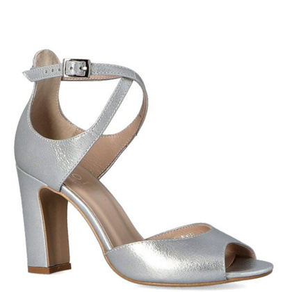 Eleganckie taneczne sandały damskie na stabilnym obcasie wyprodukowane przez polskiego producenta firmę KOTYL. Buty zostały wykonane w całości z najwyższej jakości skóry naturalnej licowej w pięknym srebrnym kolorze. Buty idealnie nadają się na własny ślub i są do wykorzystania również na inne okazje. Pantofelki zapinane są na pasek wokół kostki dzięki czemu stabilnie trzymają się stopy. Klasyczny wzór w nowoczesnym wydaniu. Buty doskonałe na każdą okazję sprawdzą się do wieczorowych stylizacji i podczas szaleństw na parkiecie. Do butów dodajemy zapasowy komplet fleków, tak abyś mogła dłużej bezstresowo cieszyć się z użytkowania zakupionego obuwia.