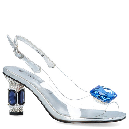 Poszukujesz sandałów na wyjątkową okazję? Jeśli tak to pochodzące z najnowszej kolekcji renomowanego producenta butów silikonowe sandały SCAVIOLA idealną propozycją! Scaviola to marka, która zdobywa serca kobiet z całego świata dzięki swoim wyjątkowym produktom o najwyższej jakości i wyrafinowanym włoskim wzornictwem. Sandałki wykonano z najwyższą starannością i dbałością o detale. Srebrne sandały wykonano z najwyższą starannością i dbałością o najmniejsze detale. Do ich produkcji wykorzystano wysokogatunkowe tworzywo, które cechuje wysoka trwałość i odporność na ścieranie. Górna część cholewki to transparentny silikon charakteryzujący się bardzo dużą elastycznością i miękkością. Przednia część butów ozdobiona pięknym diamentem w kolorze szafirowym. Niezwykły kształt i wygląd obcasa w formie stożka wysadzanego kryształkami sprawia, iż w tych butach z pewnością nie pozostaniesz niezauważona! Uniwersalne i ponadczasowe zapięcie w formie tradycyjnej sprzączki to dodatkowa zaleta sandałków, dzięki której bez trudu dopasujesz buty do szerokości stopy.