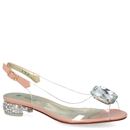 Kochasz bawić się modą? Ważny jest dla Ciebie aspekt wizualny połączony z nieocenioną wygodą? Ten model z pewnością skradnie Twoje serce! Wygodne sandały na płaskim obcasie pochodzące od renomowanej marki SCAVIOLA zostały wyprodukowane z wysokogatunkowego tworzywa, odpornego na ścieranie i warunki zewnętrzne. Sandały pięknie prezentują się na stopach, o efekcie całości decyduje wierzchnia część cholewki, która została wykonana z przezroczystego silikonu, który z racji swojej miękkości bardzo dobrze dopasowuje się do stopy oraz nie odparza ani nie obciera. Model ten posiada bardzo dobrą wentylację, co znacząco podnosi komfort użytkowania nawet w bardzo upalne dni. Fason ten cechują dwa detale: aplikacja w postaci ozdobnego, mieniącego się kamienia oraz niski 3 - centymetrowy obcas, wysadzany drobnymi kryształkami.