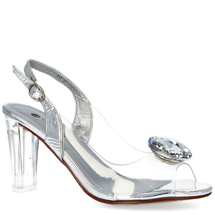Wygodne sandały damskie pochodzące z kolekcji renomowanego producenta- firmę SCAVIOLA. Buty wyprodukowane w Polsce, wzorowane na modzie włoskiej. Sandały pięknie prezentują się na stopach, o efekcie całości decyduje wierzchnia część cholewki, która została wykonana z przezroczystego, wysokogatunkowego silikonu, który z racji swojej miękkości bardzo dobrze dopasowuje się do stopy. Model ten posiada bardzo dobrą wentylację, co znacząco podnosi komfort użytkowania nawet w bardzo upalne dni. Fason ten podkreślają detale - piękna aplikacja w postaci ozdobnego kamienia. Sandałki posiadają wygodny i stabilny obcas w postaci transparentnego słupka. Model idealny na ślub (również swój własny), wesele oraz inne imprezy. W tych butach możesz komfortowo spędzić nawet 24 godziny, jest to silikon, który nie odparza.