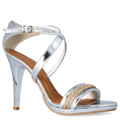 Sandały z cyrkoniami na szpilce - TYMOTEO P1015 SREBRNE