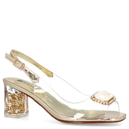 Złote silikonowe sandały na zdobnym obcasie Scaviola S-357 – elegancja i nowoczesny design