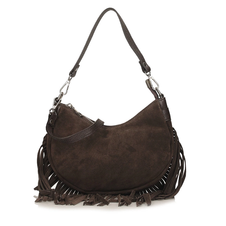 Dwustronne wykończenie skóry sprawia, że Toscanio G103 wyróżnia się spośród klasycznych torebek. Jej ciemny, ciepły brąz doskonale komponuje się z beżami, czernią i odcieniami karmelu. Stylowe frędzle dodają jej lekkości i przyciągają wzrok, a połączenie zamszu i lica podkreśla unikalny charakter tego modelu. Idealna do płaszcza, jeansów lub dzianinowej sukienki – stanie się Twoim ulubionym dodatkiem na każdy dzień.