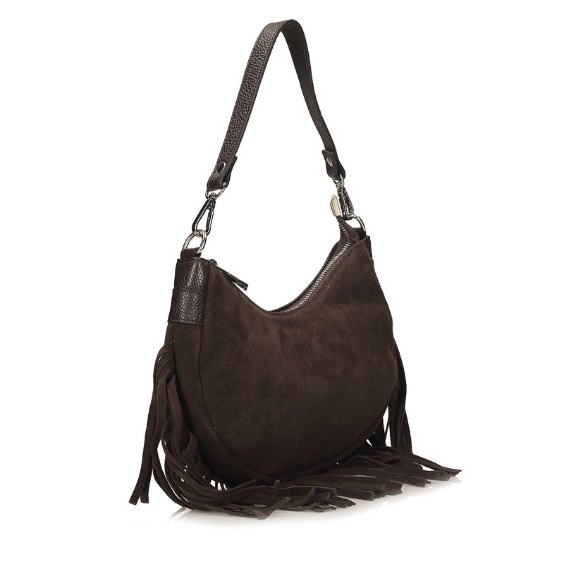 Skórzana torebka z frędzlami Toscanio G103 ciemny brąz – elegancja i styl boho w jednym