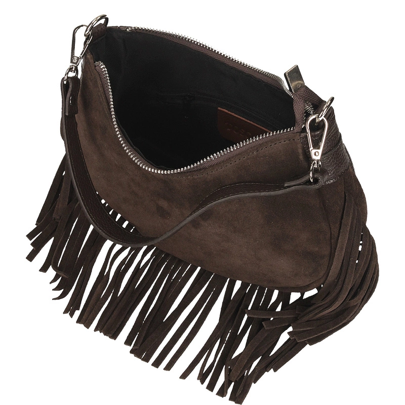 Skórzana torebka z frędzlami - TOSCANIO G103 CIEMNY BRĄZ