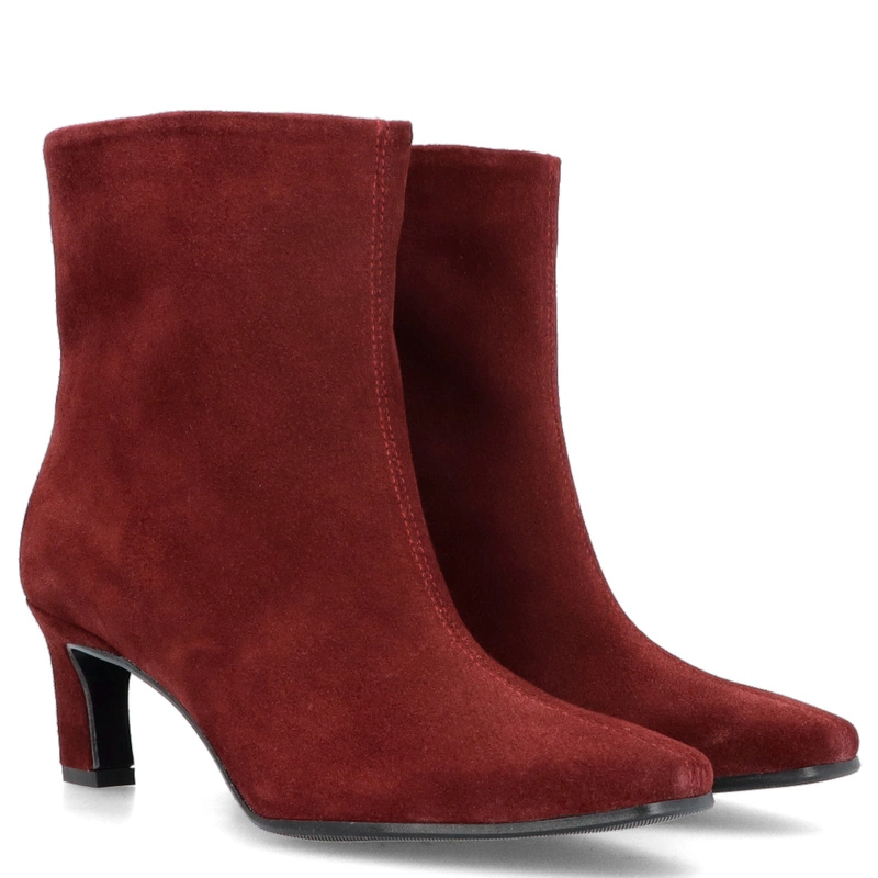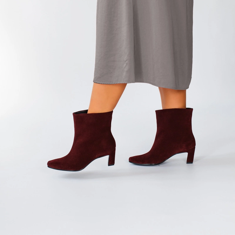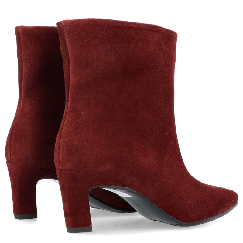 Skórzane bordowe botki na obcasie Tymoteo G1076 – zamszowa elegancja w nowoczesnym wydaniu