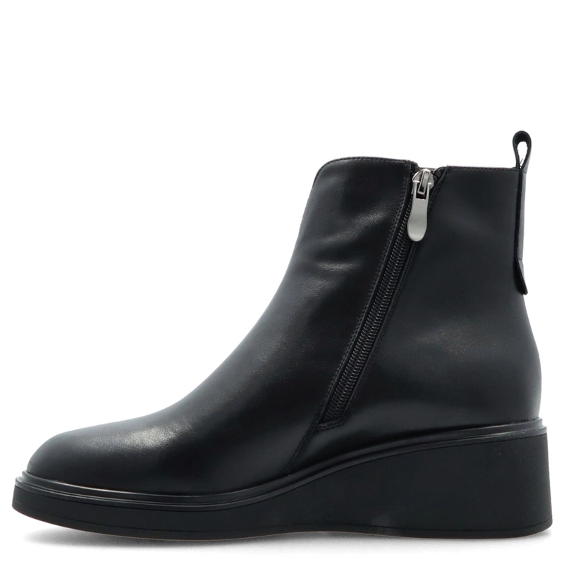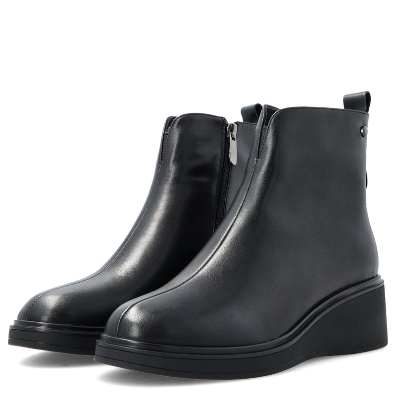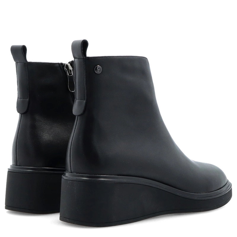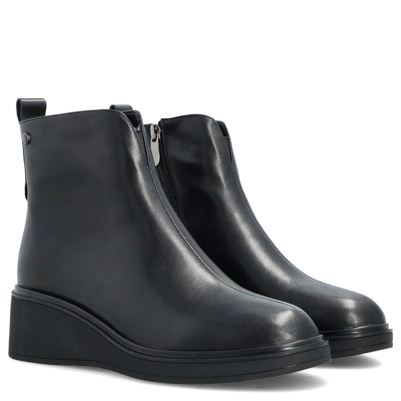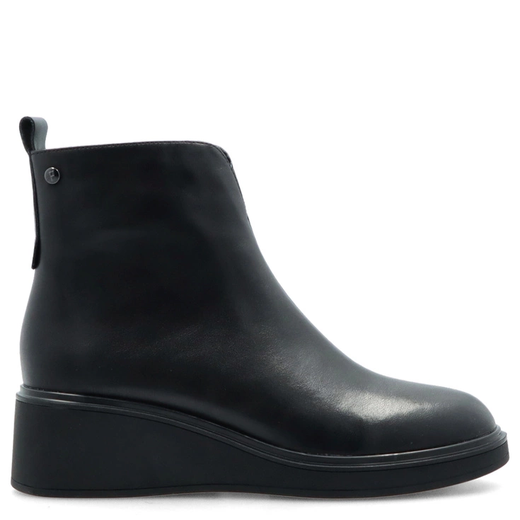 Botki Filippo przyciągają uwagę prostą, ale zarazem efektowną formą. Gładka skóra naturalna pięknie komponuje się z solidną platformą, która dodaje sylwetce kilku centymetrów, nie obciążając przy tym stopy. Model wyposażony jest w praktyczny boczny zamek, który ułatwia zakładanie i zdejmowanie obuwia, zapewniając szybkie dopasowanie.