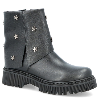 Szukasz modnych, a zarazem wygodnych butów? Kochasz podążać za najnowszymi trendami? Z pewnością pokochasz najnowsze botki z kolekcji TYMOTEO. Botki z wywijaną cholewką to stylowe i wszechstronne obuwie, które łączy w sobie elegancję z odrobiną nowoczesności. Botki na wygodnym 5 - centymetrowym obcasie prezentują się doskonale. Stylistyka zaczerpnięta z klasycznych botków w subtelnym wydaniu to świetne uzupełnienie codziennych strojów. Cholewka buta została wykonana z miękkiej, naturalnej skóry licowej, która odznacza się trwałością i szykownym wyglądem - dodatkowo ozdobiona dżetami w postaci srebrnych kwiatków.