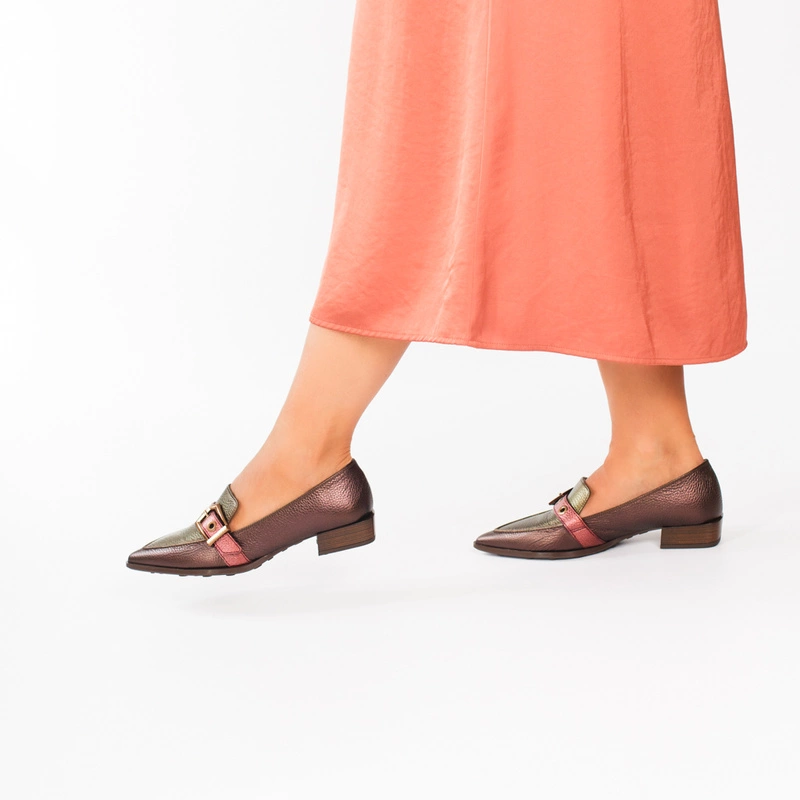 Te czółenka damskie zostały wykonane z wysokogatunkowej skóry naturalnej, która miękko układa się na stopie i dopasowuje do jej kształtu. Multikolorowa cholewka o subtelnym połysku dodaje butom wyrazistości, a jednocześnie zachowuje elegancki charakter. Wnętrze buta zostało wyściełane miękkim materiałem, co zapewnia komfort nawet podczas wielogodzinnego noszenia.