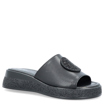 Skórzane klapki na platformie - FILIPPO DK6987/25 CZARNE