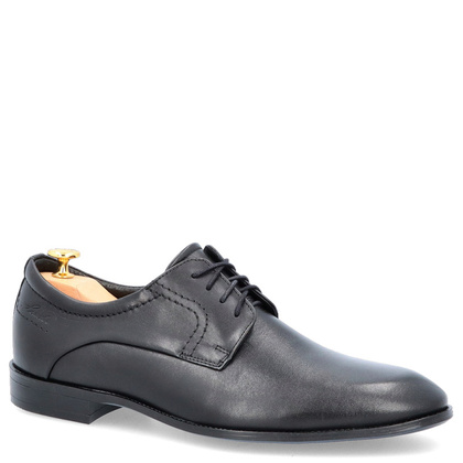 Czarne półbuty męskie ze skóry to eleganckie obuwie, które świetnie będą komponowały się z garniturem i sprawdzą się też do mniej formalnych stylizacji. Będą doskonałym wyborem do eleganckich lub biznesowych strojów. Stanowią nieodłączny element męskiej garderoby, które dodaje profesjonalizmu każdej stylizacji. Model ten jest niesamowicie wygodny i dobrze wyprofilowany. Obowiązkowa pozycja w szafie każdego mężczyzny. Produkt najwyższej jakości. Koniecznie sprawdź naszą ofertę pozostałych modeli butów męskich.