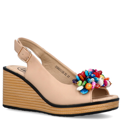 Skórzane sandały na koturnie Filippo DS6021/25 beżowe – elegancja i wygoda w letnim stylu