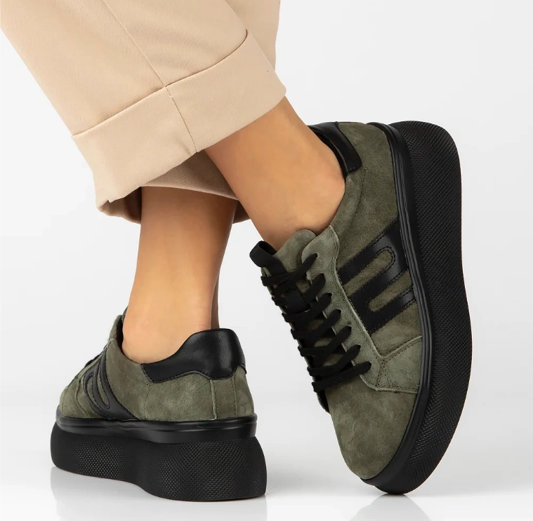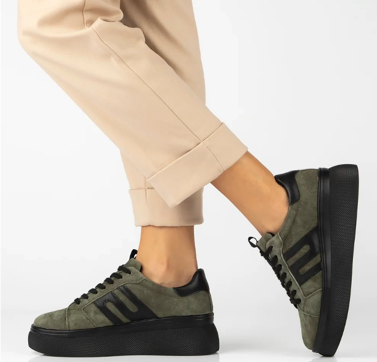 Skórzane sneakersy damskie Filippo DP7175/25 khaki – połączenie komfortu i nowoczesnego designu