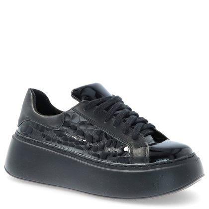 Cenisz sobie wygodę i styl? Jeśli tak to sneakersy z najnowszej kolekcji marki TYMOTEO będą idealną propozycją dla Ciebie! Buty wykonane zostały z najwyższej jakości naturalnej skóry licowej w klasycznym czarnym kolorze. Cholewka posiada ozdobne wstawki ze skóry lakierowanej. Sneakersy sprawdzą się doskonale w nieco chłodniejsze dni! Zastosowana w butach skórzana wkładka da Ci poczucie komfortu i wygody podczas codziennego użytkowania. Buty posiadają praktyczne sznurowanie, dzięki któremu ich użytkowanie będzie przyjemniejsze. Wygodna, gruba podeszwa w czarnym odcieniu nadaje im ciekawego wyglądu.
