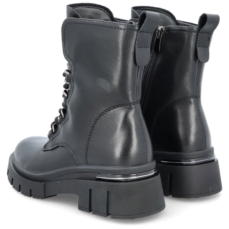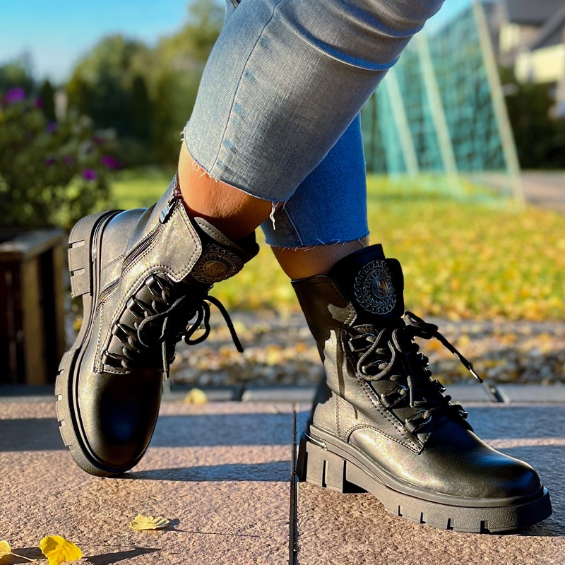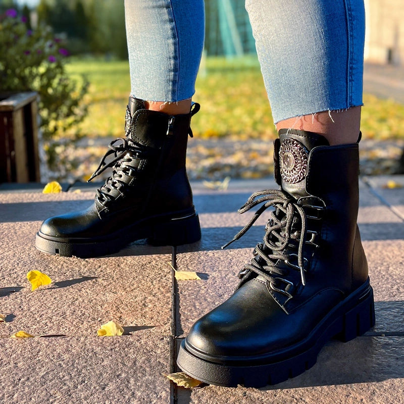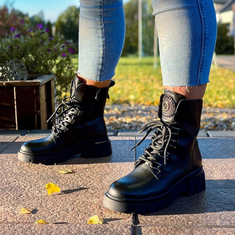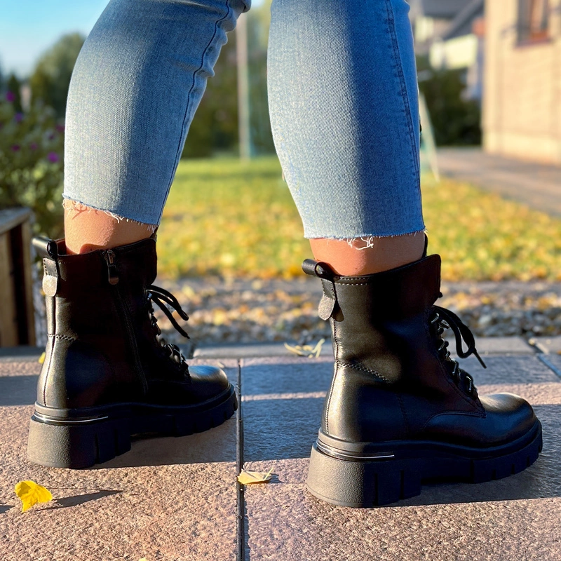 Workery zostały zaprojektowane z myślą o wygodzie noszenia w różnych warunkach. Solidna podeszwa na platformie zapewnia dobrą przyczepność i stabilność, jednocześnie delikatnie unosząc sylwetkę. Wnętrze butów wyposażono w miękką wkładkę, która zwiększa komfort nawet podczas całodziennego użytkowania. Zapięcie na zamek ułatwia zakładanie i zdejmowanie obuwia, a dodatkowe sznurowanie pozwala idealnie dopasować cholewkę do stopy.