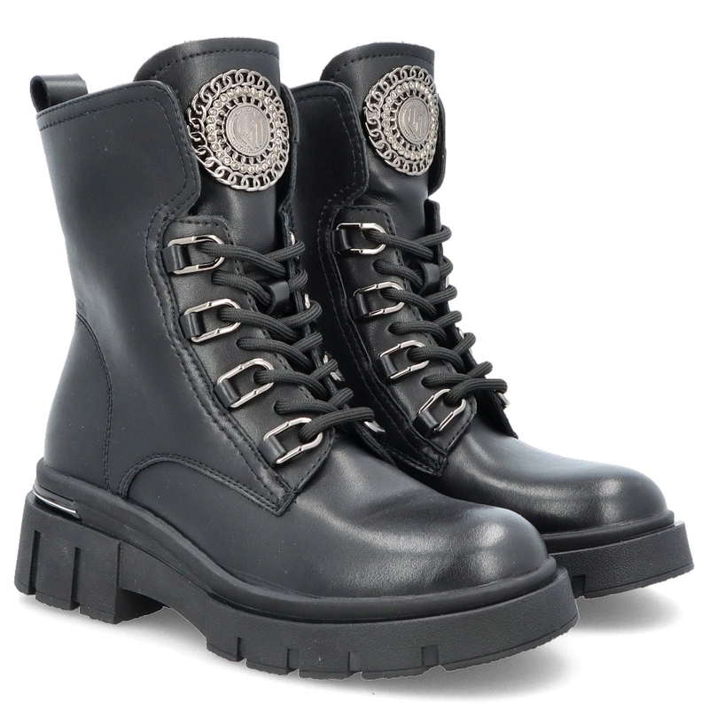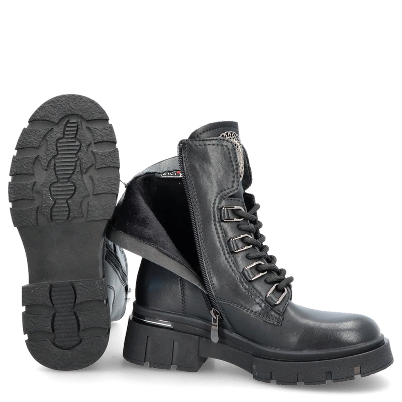 Filippo DBT6521/25 to workery stworzone dla kobiet, które cenią mocny styl, solidne wykonanie i komfort użytkowania. Wykonane z wysokiej jakości skóry naturalnej w klasycznym czarnym kolorze, wyróżniają się masywną podeszwą na platformie, która nadaje im wyrazistego, nowoczesnego charakteru. To buty idealne na sezon jesienno-zimowy, łączące funkcjonalność z aktualnymi trendami.