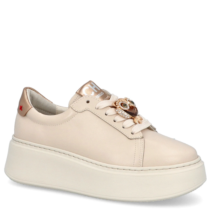 Sneakersy skórzane z ozdobą - CHEBELLO 4411 JASNY BEŻ