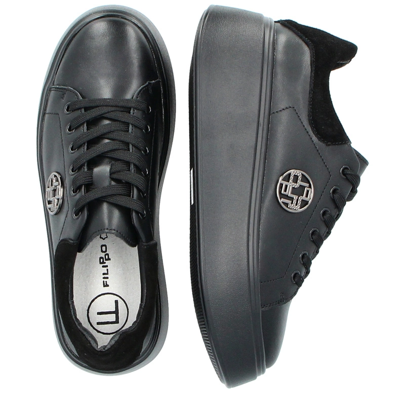 Czarne sportowe buty Filippo DP6058/25 to połączenie ponadczasowego designu z funkcjonalnością, której potrzebujesz na co dzień. Klasyczna czerń sprawia, że model jest niezwykle uniwersalny i łatwy do dopasowania do różnych stylizacji – od sportowych po casualowe. Wykonane z wysokiej jakości skóry naturalnej licowej, zapewniają trwałość i komfort przez wiele sezonów.