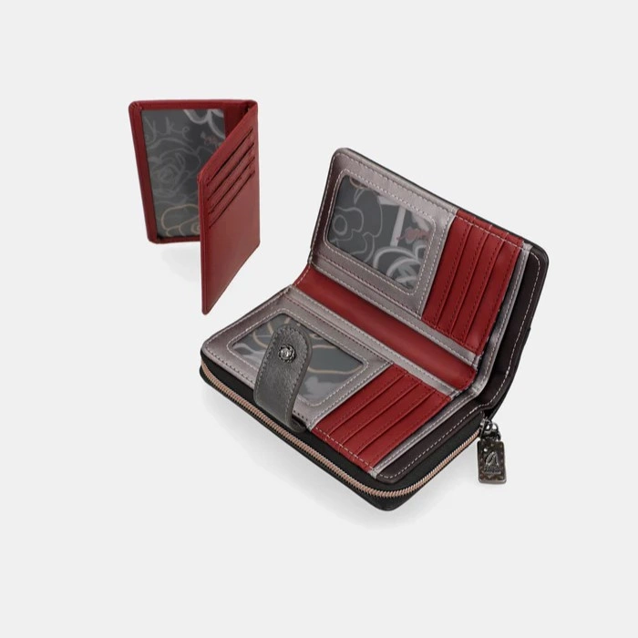 Wykonany z wysokiej jakości, miękkich i trwałych materiałów, portfel zdobi grafika z Anekke – stylizowana na paryski pejzaż z ozdobnymi haftami i metalicznymi akcentami. Całość przyciąga wzrok i zachwyca kobiecym wykończeniem.
