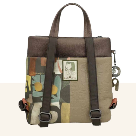 Front plecaka zdobi grafika Anekke inspirowana grecką ceramiką – z delikatnymi haftami, złocistymi refleksami i pastelowymi odcieniami beżu, ochry oraz błękitu. Zawieszka w formie amfory symbolizuje kobiecą harmonię i sztukę tworzenia piękna z wnętrza. Każdy detal wykonano z niezwykłą dbałością, czyniąc z tego plecaka małe dzieło sztuki.