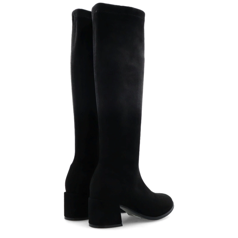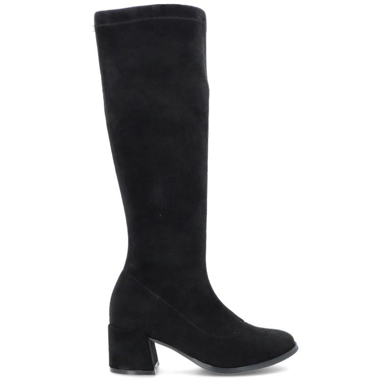 Wnętrze zostało wykończone miękką tkaniną, a skórzana wkładka dba o komfort i higienę użytkowania. Elastyczna cholewka streczowa nie uciska, dopasowuje się do kształtu łydki i zapewnia wygodę przez cały dzień. Model jest wsuwany, co czyni go wyjątkowo prostym i wygodnym w zakładaniu.