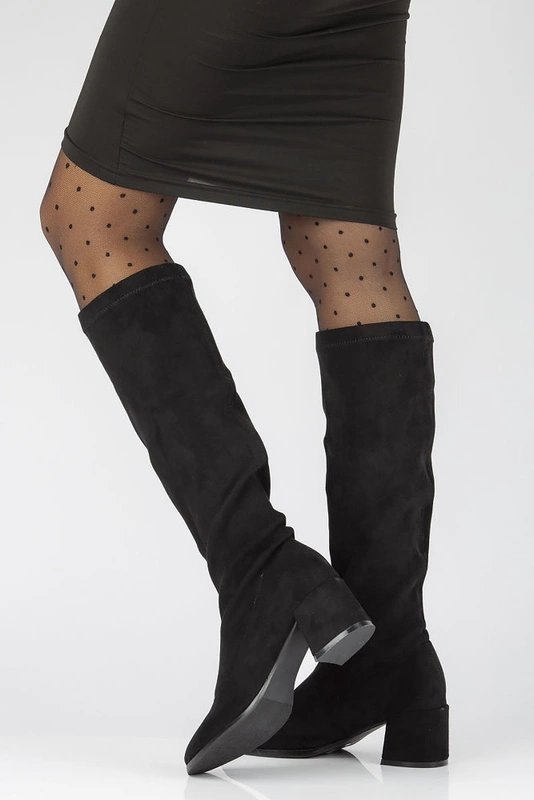 Streczowe kozaki na obcasie - FILIPPO DKZ932/25 CZARNE
