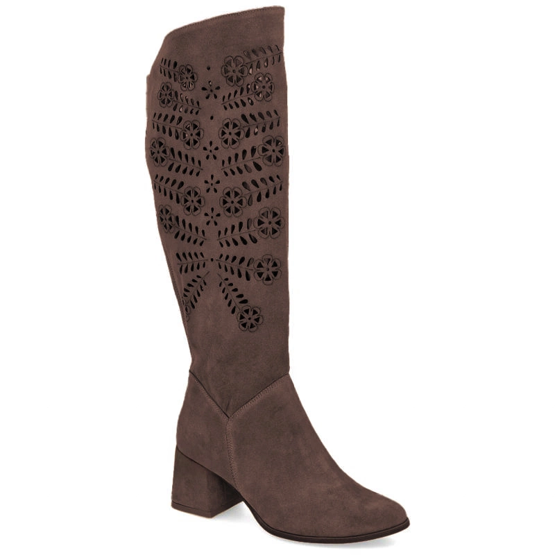 Stylowe ażurowe kozaki - TYMOTEO L1001 CZEKOLADOWE