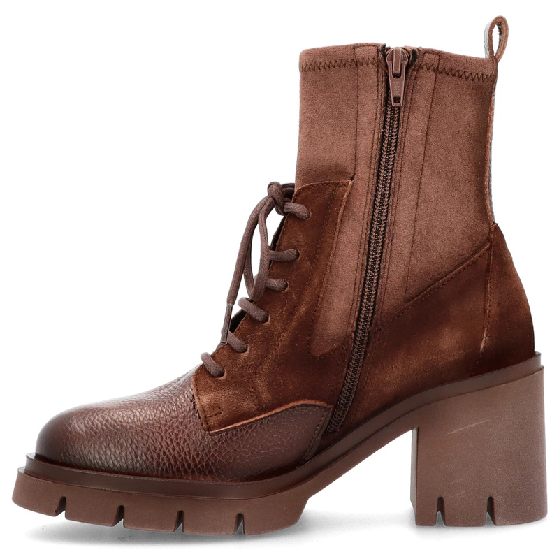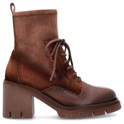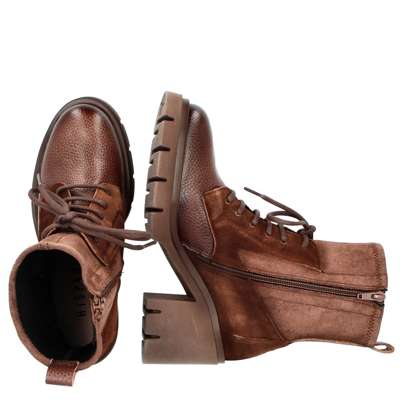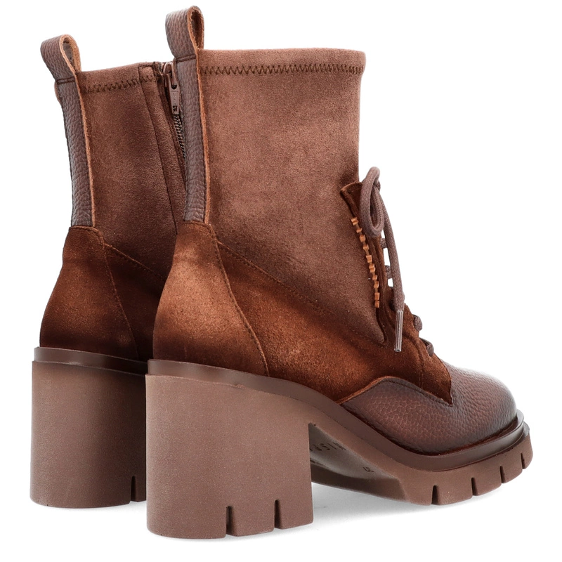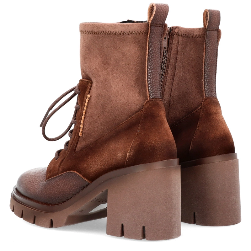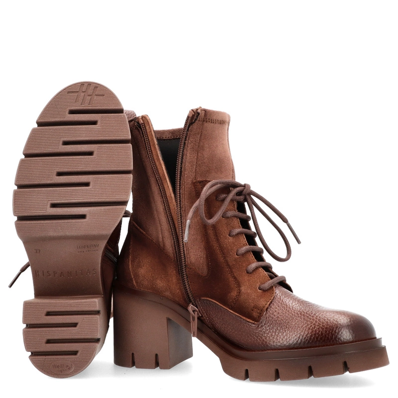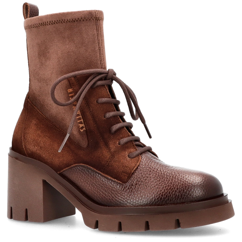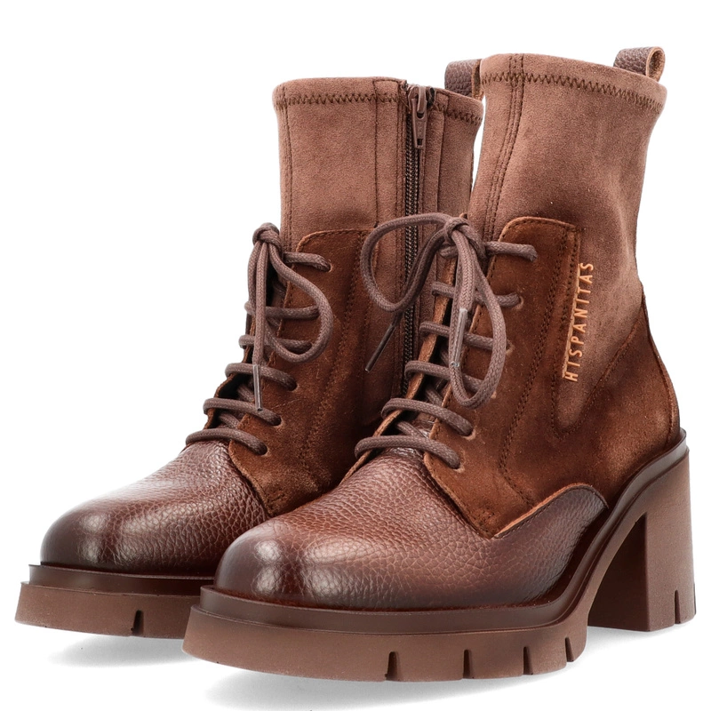 Sznurowane botki damskie Hispanitas HI254281 czekoladowe – skórzane, eleganckie, na obcasie