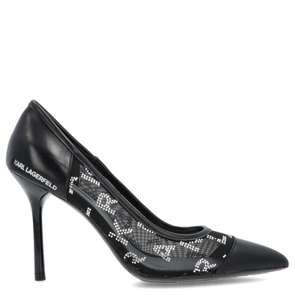 Szpilki wykonane zostały z wysokiej jakości materiałów, które pięknie prezentują się na stopie i gwarantują trwałość. Smukły, wysoki obcas podkreśla kobiecą sylwetkę, dodając jej lekkości i elegancji. Szpiczasty nosek nadaje modelowi ponadczasowy charakter, a subtelne detale sygnowane logo KARL LAGERFELD podkreślają ekskluzywny styl.