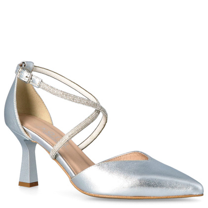 Niezwykle wygodne czółenka w eleganckim srebrnym odcieniu posiadają wszystkie niezbędne cechy idealnych butów ślubnych. Zachwycają swym idealnym wykończeniem - nie przejdziesz w nich niezauważona. Doskonale podkreślą kobiecość i wdzięk dzięki zdobnym wykończeniem paseczków, które zdecydowanie nadają im uroku oraz błysku! Dzięki swojej klasycznej i tradycyjnej formie buty będą doskonałym dopełnieniem każdej wieczorowej i eleganckiej stylizacji — nie tylko tej ślubnej. Zachęcamy do zapoznania się z ofertą butów ślubnych dostępną na stronie internetowej.