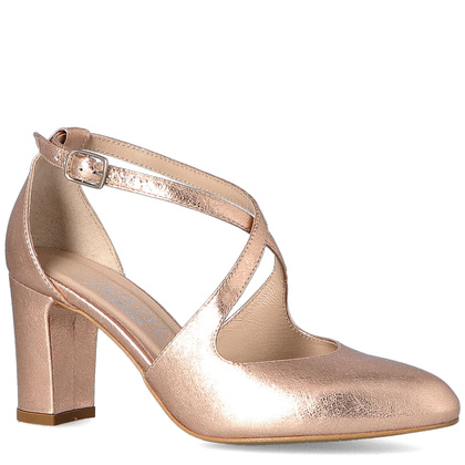 Różowo-złote czółenka marki KOTYL to idealna propozycja dla każdej nowoczesnej kobiety, która podczas swojego ślubu pragnie się wyróżniać i nieco odbiegać od utartego stereotypu panny młodej w klasycznej bieli. To obuwie sprawdzi się doskonale pod względem wizualnym, ale również praktycznym. Buty marki KOTYL są bardzo wygodne, dzięki czemu będziesz mogła przetańczyć w nich całą noc. Obcas w postaci słupka mierzy 7,5 cm i jest bardzo stabilny, dlatego, nawet jeżeli nie nosisz butów na obcasie na co dzień, te czółenka na pewno przypadną Ci do gustu. Czółenka w całości wykonane są z naturalnej skóry, dzięki czemu jest to obuwie najwyższej jakości, które posłuży Ci podczas ślubu, ale też na wiele innych okazji.