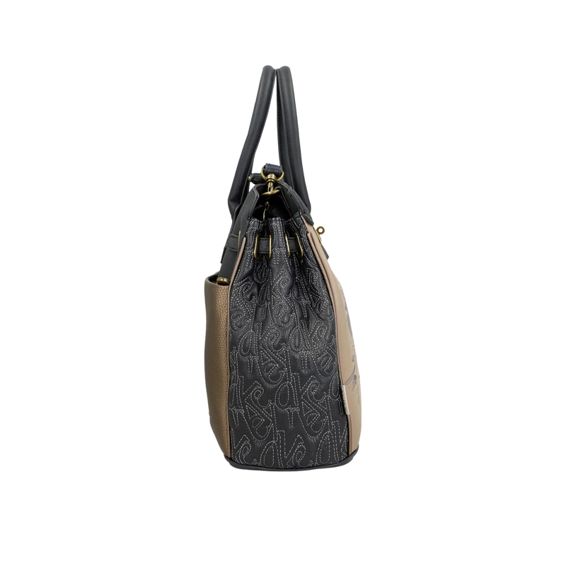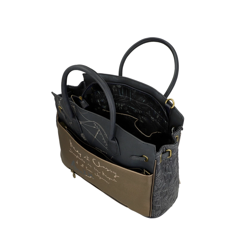 Model został wykonany z materiałów wysokiej jakości – miękkich, trwałych i estetycznych. Front torby zdobi artystyczna grafika w stylu szkicu, przypominająca o pierwszej kresce rysowanej w pracowni projektanta. Dodatkowe hafty, metaliczne detale i ozdobne przeszycia nadają jej głębi i paryskiego szyku.