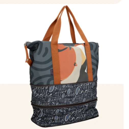 Torba utrzymana jest w estetyce charakterystycznej dla kolekcji Muse, z dekoracyjną grafiką Anekke i stonowaną kolorystyką. Klasyczne wykończenie sprawia, że model prezentuje się spójnie z pozostałymi elementami linii podróżnej i pozostaje uniwersalny w użytkowaniu.