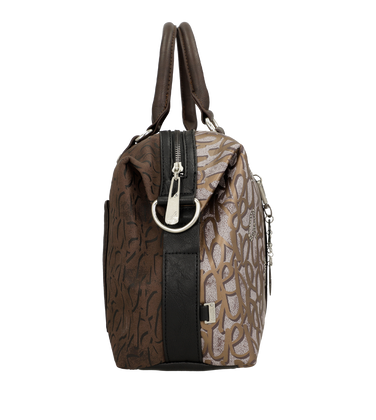 Ta damska torba jest duża i ma zewnętrzną tylną kieszeń. Posiada dwa uchwyty oraz odpinany, regulowany pasek na ramię. Wnętrze jest wyściełane i posiada kieszenie.
