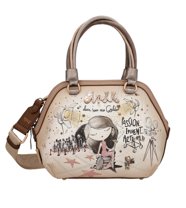 Torebka damska posiada dużą pojemność. Zapinana jest na zamek błyskawiczny, ma podszewkę i kieszenie wewnętrzne, a także zewnętrzną kieszeń z tyłu. Podczas noszenia możesz wybierać pomiędzy dwoma uchwytami lub dodać regulowany pasek na ramię o różnej długości. Świetnie dopracowane są detale: hafty, błyszczące akcenty, przypinki w kształcie gwiazdek, metaliczne logo z perłami, przypinka Towanda i spersonalizowana naszywka lub uchwyty to tylko niektóre z wielu szczegółów, które znajdziesz w tej pięknej torbie, która będzie idealna sprawi, że poczujesz się jak prawdziwa klasyczna diwa Hollywood.