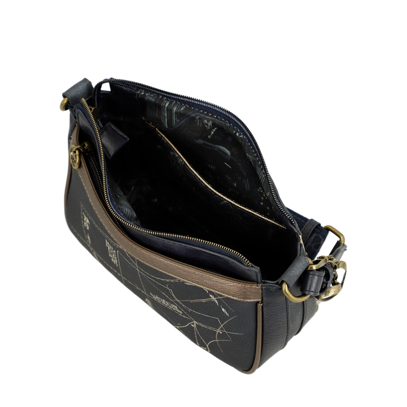 Komora główna zapinana na suwak pomieści telefon, portfel, klucze i najpotrzebniejsze rzeczy. Wnętrze zostało wyposażone w kieszonki na drobiazgi, a zewnętrzne przegrody z przodu i z tyłu zwiększają funkcjonalność modelu. Długi, regulowany pasek umożliwia wygodne noszenie na ramieniu lub przez ciało.
