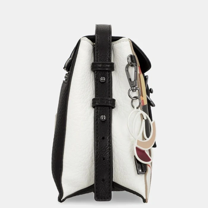 Front torebki, zwieńczony klapką, zdobi charakterystyczny motyw rzęs Anekke. Graficzny, wyrazisty i symboliczny, przypomina pociągnięcie pędzla na obrazie. Klapka podkreśla kompozycję frontu, nadając całości wyrafinowany, artystyczny charakter.