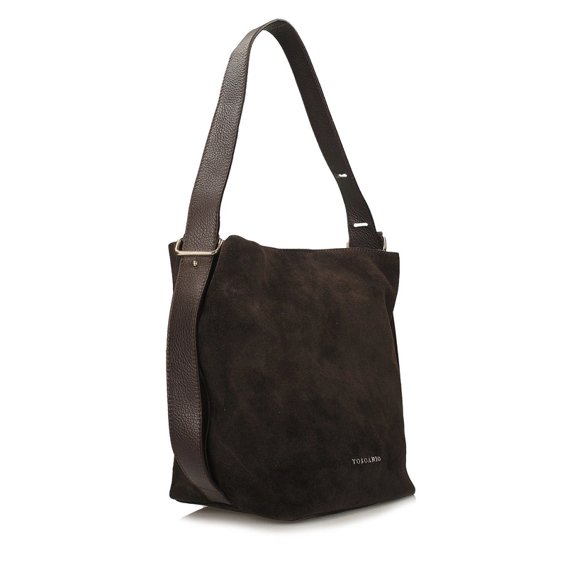 Toscanio G100 w ciemnobrązowym kolorze to torebka, która łączy w sobie funkcjonalność i elegancki design. Dzięki miękkiej skórze zamszowej oraz swobodnej formie worka sprawdzi się idealnie w codziennych stylizacjach, jednocześnie dodając im klasy i ponadczasowego charakteru.