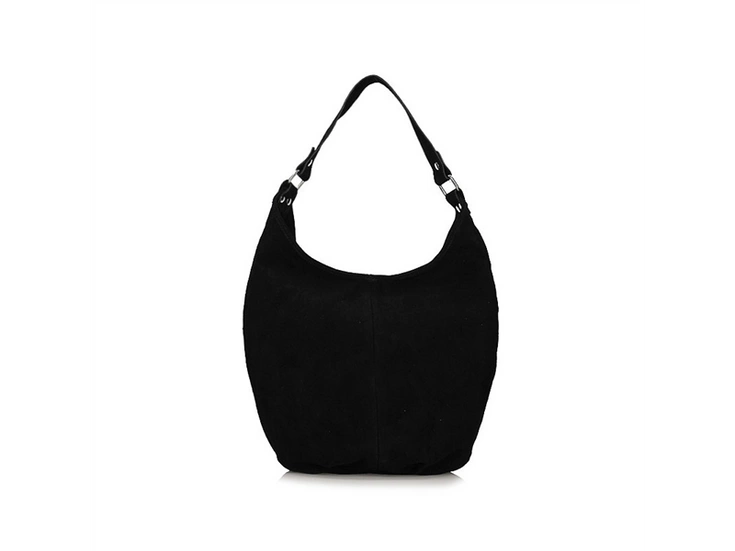 Czarna torebka Toscanio A284 to połączenie elegancji, luzu i praktycznego designu w najlepszym wydaniu. Wykonana z wysokiej jakości weluru, zachwyca miękką strukturą i subtelnym połyskiem, który dodaje jej wyjątkowego uroku. To model typu worek, idealny dla kobiet, które cenią połączenie codziennej wygody z eleganckim wykończeniem. Stylowa, funkcjonalna i ponadczasowa – sprawdzi się w każdej sytuacji.