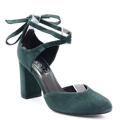 Eleganckie czółenka zaprojektowane na bazie butów tanecznych ze skóry naturalnej typu zamsz w najmodniejszym w tym sezonie kolorze butelkowej zieleni. Pantofelki mają stabilny obcas w kształcie słupka. Czółenka posiadają gorsetowe sznurowanie wzdłuż linii wierzchu, bardzo trendy w tym sezonie. Klasyczny wzór w nowoczesnym wydaniu. Stabilne i eleganckie, doskonałe na wyjątkowe okazje - ślub, sylwester, uroczystości rodzinne. Buty idealnie sprawdzą się do wieczorowych stylizacji i podczas szaleństw na parkiecie. Pantofle wykonane w całości ze skóry naturalnej w środku i na zewnątrz. Wzorowane na najnowszych trendach włoskiej mody. Producentem butów jest polska firma KOTYL. Do butów dodajemy zapasowy komplet fleków, tak abyś mogła dłużej bezstresowo cieszyć się z użytkowania zakupionego obuwia.